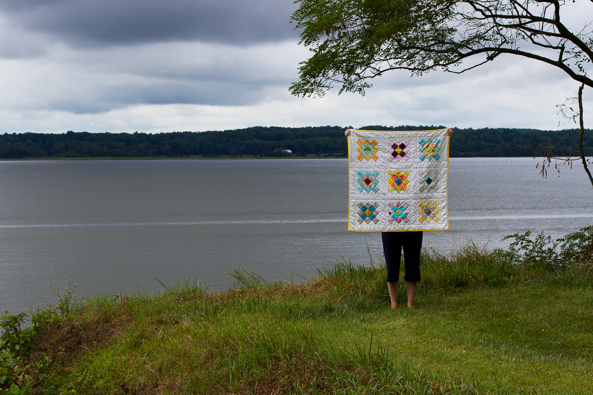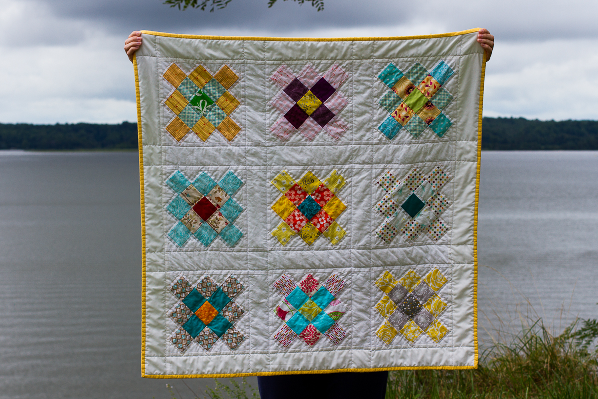 Finding a bird pattern led to much snickering when we settled on a free Blue Tit bird pattern from Lion Brand. Be warned: It is a finicky knit, and there was much swearing by all involved. The pattern is clear, it’s just a pain to knit. My bad; I am the one who found the pattern and decided it was the one! Ultimately one of us decided to knit the branches instead of wrestling the yarn into a bird (fine by me–finding random branches and ensuring they were bug-free was kind of stressing me out). Another took on the task of quilting and binding the group quilt (more on that separately), so in the end we had 7 unique birds!